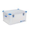 Aluminiumskasse - B:800mm D:600mm H:400mm - Volum på 155 Liter. Værsikker, IP54. Kapasitet 50 kg. Zarges Eurobox er beregnet for deg som vil ha en solid innpakning til en gunstig pris. Kassene er utstyrt med pakning i lokket som hindrer inntrengning av støv og vannsprut, forsterkningsprofiler i alle ender og rustfrie hengsler. I tillegg er kassene utstyrt med smarte stabelhjørner, fjærbelastede håndtak og solide haspelåser som enkelt låses med hengelås. Kassen har også markeringsskilt som kan byttes ut med en tilpasset nøkkellås. Kan utstyres med ulike typer tilpasset innredning som skillevegg, verktøybakker, verktøymapper, plukkskum, etc.