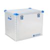 Aluminiumskasse - B:800mm D:600mm H:600mm - Volum på 240 Liter. Værsikker, IP54. Kapasitet 50 kg. Zarges Eurobox er beregnet for deg som vil ha en solid innpakning til en gunstig pris. Kassene er utstyrt med pakning i lokket som hindrer inntrengning av støv og vannsprut, forsterkningsprofiler i alle ender og rustfrie hengsler. I tillegg er kassene utstyrt med smarte stabelhjørner, fjærbelastede håndtak og solide haspelåser som enkelt låses med hengelås. Kassen har også markeringsskilt som kan byttes ut med en tilpasset nøkkellås. Kan utstyres med ulike typer tilpasset innredning som skillevegg, verktøybakker, verktøymapper, plukkskum, etc.