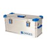 Aluminiumskasse - B:670mm D:260mm H:310mm - Volum på 36 Liter. Værsikker, IP54. Kapasitet 50 kg. Zarges Eurobox er beregnet for deg som vil ha en solid innpakning til en gunstig pris. Kassene er utstyrt med pakning i lokket som hindrer inntrengning av støv og vannsprut, forsterkningsprofiler i alle ender og rustfrie hengsler. I tillegg er kassene utstyrt med smarte stabelhjørner, fjærbelastede håndtak og solide haspelåser som enkelt låses med hengelås. Kassen har også markeringsskilt som kan byttes ut med en tilpasset nøkkellås. Kan utstyres med ulike typer tilpasset innredning som skillevegg, verktøybakker, verktøymapper, plukkskum, etc.