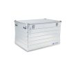 Aluminiumskasse - B:1200mm D:800mm H:700mm - Volum på 575 Liter. Zarges Værsikker, IP54. Kapasitet 50 kg. Zarges Eurobox er beregnet for deg som vil ha en solid innpakning til en gunstig pris. Kassene er utstyrt med pakning i lokket som hindrer inntrengning av støv og vannsprut, forsterkningsprofiler i alle ender og rustfrie hengsler. I tillegg er kassene utstyrt med smarte stabelhjørner, fjærbelastede håndtak og solide haspelåser som enkelt låses med hengelås. Kassen har også markeringsskilt som kan byttes ut med en tilpasset nøkkellås. Kan utstyres med ulike typer tilpasset innredning som skillevegg, verktøybakker, verktøymapper, plukkskum, etc.