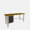 L:2000mm D:750mm H:750-1050mm. Enkelt bord med kraftig 40mm benkeplate og underdel med 3 skuffer (90mm, 180mm og 270mm). Bordet har manuelt justerbare bein og høy kapasitet på 800 kg.