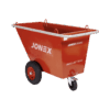 Jonex Ryddig avfallsvogn er en solid og lett manøvrerbar vogn i kraftig stål beregnet for avfallshåndtering på byggeplasser. 400 liter volum og kapasitet 750 kg. Ryddig er utstyrt med 2 stk. 400 mm store massivhjul og 1 stk. 200 mm svingbar trinse med brems. Jonex Ryddig er godkjent for løft, og er utstyrt med fire løfteører. Leveres også med gummi fenderlist. CE-Merket.
