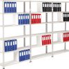 Enkel og meget kraftig reol til oppbevaring av ringpermer. Dette er en av våre bestselgere! Krever ingen skruing - Montering krever kun hammer. Hyllekapasitet på 275 kg. Ingen ryggstag gir tilgang fra begge sider.
