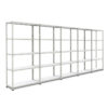 Hver seksjon kan stå separat. Ingen rygg- eller sidestag gir tilgang fra alle sider. Hyller av hvite melaminplater 16mm (hardplastlaminerte sponplater). Vektbelastning 275 kg pr hylle.