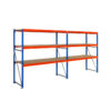 Utrolig enkel å montere, demontere, flytte, etc!!! Kraftig reol med hyllerom på 196cm lengde. Alle nivåer har illeggsplater i 25mm spon. Kapasitet pr nivå er 620kg.