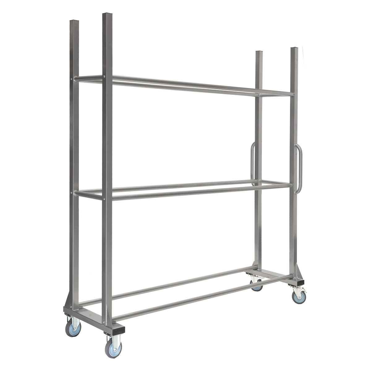 Ypperlig for kompakt lagring av dekk eller enkel transport av dekk! Rørene har lengde på 2000mm og horisontal avstand mellom rør er ca 400mm. Hjulsett med 2 hjul med brems og 2 hjul uten brems. Håndtak på en side for enkel transport av vogn. Grålakkert utførelse.