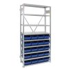 L:1050mm D:300mm H:2000mm - Komplett delelager med 9 hyller og totalt 20 plastskuffer i 1 størrelse: 20 skuffer DxBxH 300x240x150mm. Kapasitet 160 kg pr hylle.