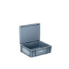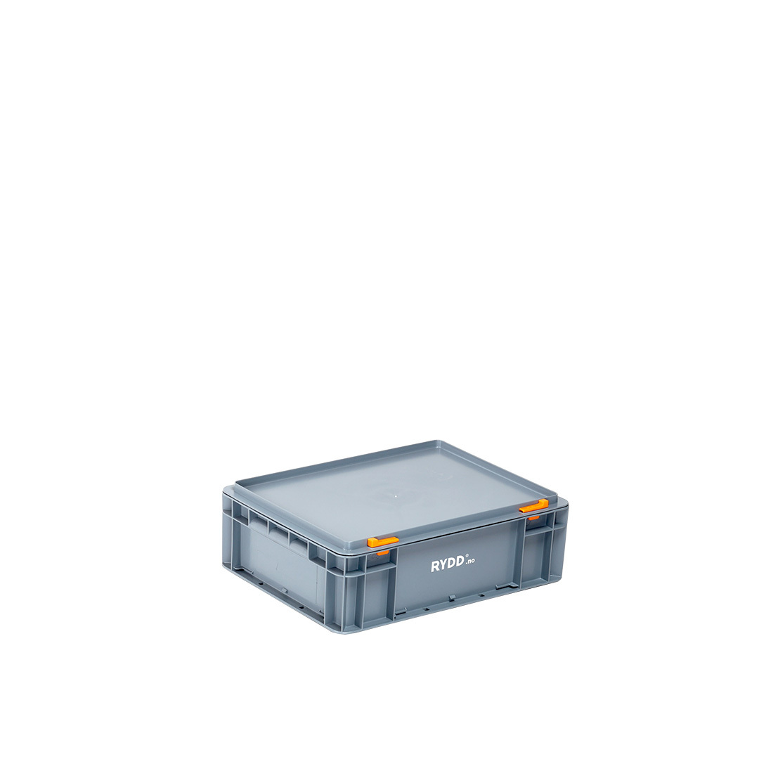 Innvendig mål: 365x265x110mm. Euroboksen følger europeisk standard og passer perfekt på pall og i automatiserte systemer. Den er laget i slagfast polypropylen som tåler støt og temperaturvariasjoner. Forsterket bunn gir ekstra styrke, og ergonomiske håndtak gjør den enkel å håndtere. Konstruert for stabil stabling, som betyr ingen vinglebokser på lageret. Kort sagt: Robust, ryddig og optimal for effektiv lagring.