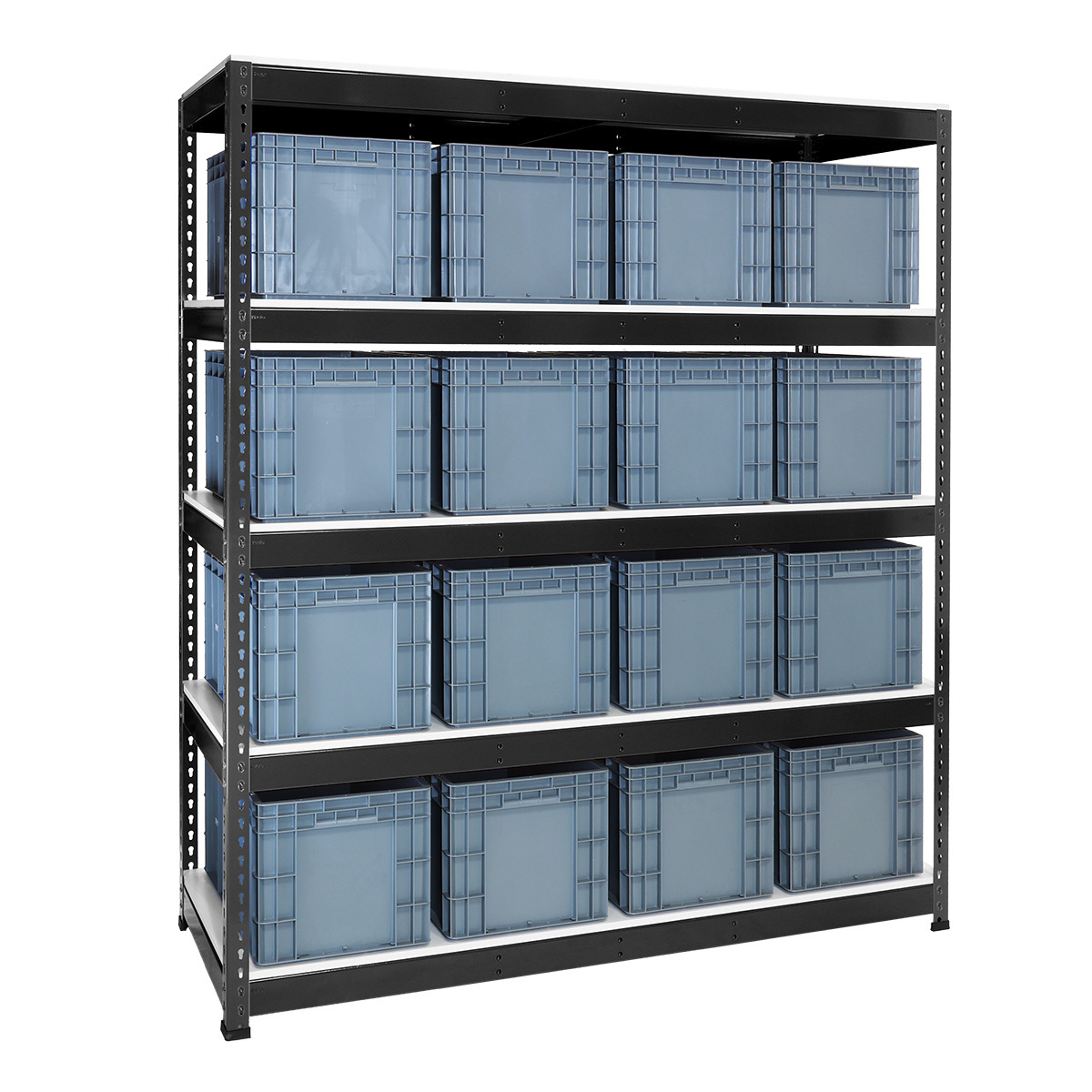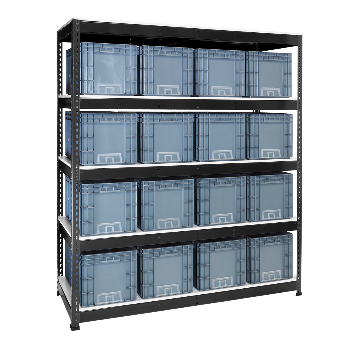 Euroboksreol med 16 stk Euroboks RYDD 70 liter inkl etikettholder
