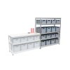 Euroboksreol med 8 stk. 50 liter Eurobokser og 8 stk. 65 liter Eurobokser