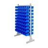 Komplett stativ med 126 plastbokser - B:1150mm H:1875mm D:510mm - Dette er et enkelt og kraftig plastboksstativ hvor boksene er hektet på stativet. Stativet er bygget opp med 63 stk solide plastbokser av type Futura 4. Boksene kan enkelt hektes på og av stativet. Plastboksene hektes på begge sider av stativet.