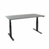 H:650-1300mm D:800mm L:1600mm. Elektrisk høydejusterbart med hastighet på 38mm pr sekund og løftekapasitet på 80 kg. Kollisjonsoppdagelse er også aktivert for å hindre at ulykker og skader. Ramme i svart RAL 9005 og bordplate i lys grå. Bordplaten kryssfiner av bjørk med plastlaminering og tykkelse på 25mm.