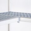 Reol i anodisert aluminium og polypropylene plast for hygiensik lagring. Hjørnehyllefester for montering av hyller i hjørneløsning. Denne reolen er spesielt designet til hygieniske rom, f.eks kjøkken, kjølerom og våtrom. Perforerte hylleplater for god sirkulasjon av kaldluft i kjølelager. Hyllene kan vaskes i oppvaskmaskin.