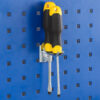 L:55mm B:25mm Ø5mm. Opphengskrok for bl.a. slagverktøy. Elforsinket. Kroken passer perforerte paneler, der den hektes i platens perforering og låses med stoppskrue.