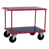 Lastehøyde: 250mm. Hjul: Massive/200mm m/gummibane (2 svingbare og 2 faste). Vekt 22 kg. Har du mange varer som skal pakkes, plukkes eller settes på plass? Med Jonex lagertralle får du en hendig allround-tralle med god plass (2 hyller på 1000x600mm) og meget god vektkapasitet (500kg), Trallen er lett å flytte og er stillegående. Leveres flatpakket.