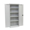 Dette er et kraftig og godt helsveist kvalitetsskap. Et helsveist skap betyr ingen monteringstid - sett skapet rett på plass. Skapet har 3-punkts låsing og sylinderlås med 2 medfølgende nøkler. Skapet inneholder 4 løse hyller som kan monteres ved ønsket høyde. Åpningsvinkel på dørene er på 180 grader. Kabinettet har kapasitet på 500 kg. Mye skap for pengene! Farge på kabinett og dør: RAL 7035 Lys Grå
