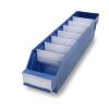 Et kompakt design med slagfast polypropen. Formstabil i temperaturer fra -20°C til +80°C. Denne plastboksen har plass til 7 skillevegger og passer godt til småvarereoler med dybde på 400mm. Antall i forpakning er 40 stk. Pris er pr stk.