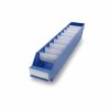 Et kompakt design med slagfast polypropen. Formstabil i temperaturer fra -20°C til +80°C. Denne plastboksen har plass til 9 skillevegger og passer godt til småvarereoler med dybde på 500mm. Antall i forpakning er 40 stk. Pris er pr stk.