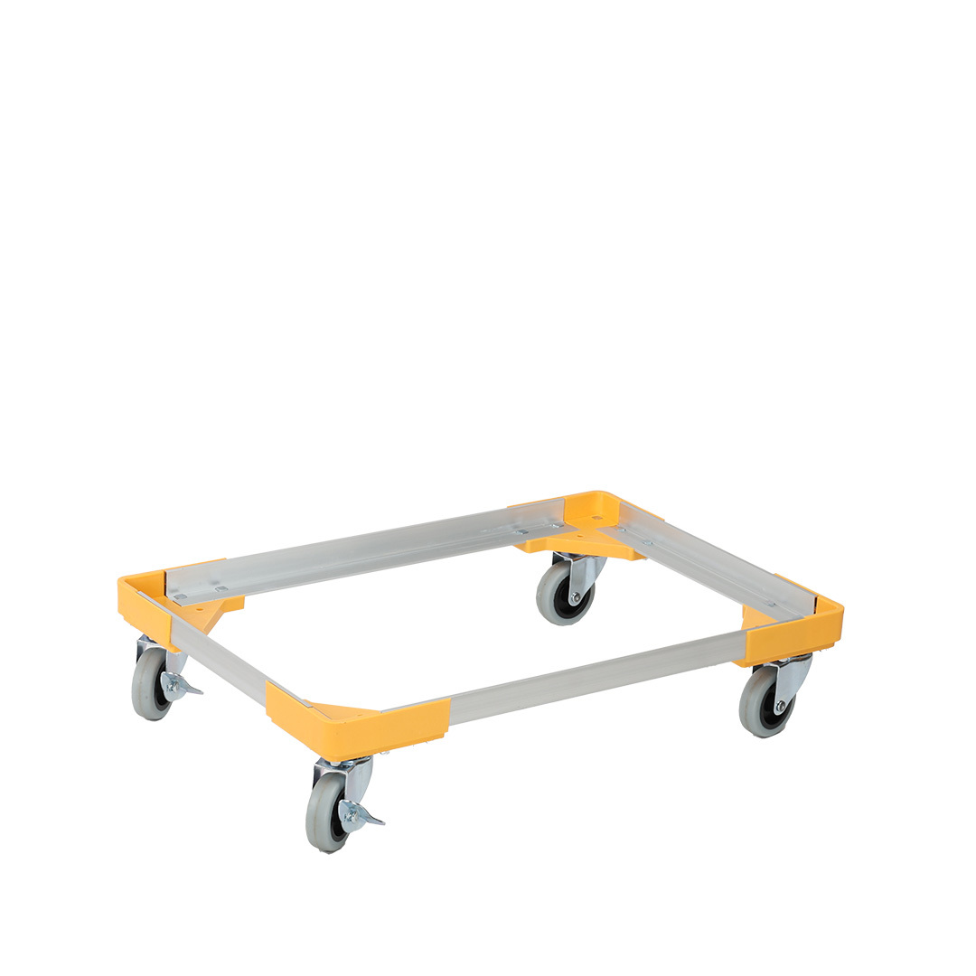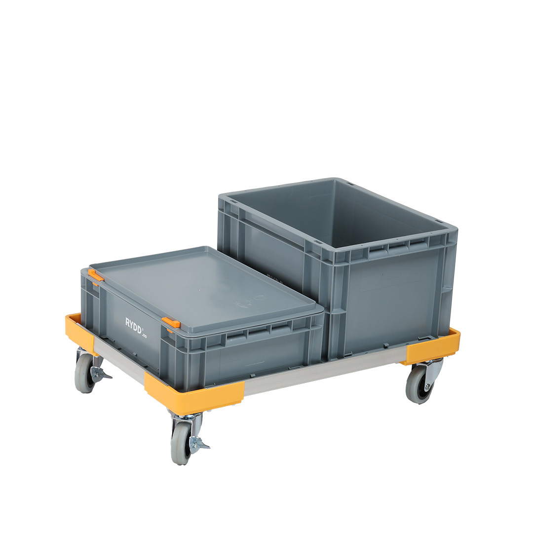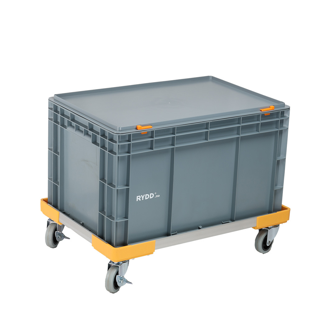 Tralle i kraftig plast med gummihjul - Lastekapasitet opp til 150 kg. Passer også til 2 stk Euroboks 10 eller Euroboks 20. 3'' stillegående hjul med sving - 2 av hjulene med brems.