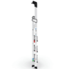 Total lengde: 1680mm. Loddrett høyde: 1531mm. Største bredde: 940mm. Antall trinn: 4. Vekt: 5,2 kg. Climber Trappestige er en lett og stødig trappestige, med praktisk lås og bærehåndtak. Trappens sidevanger er av lukket aluminium firkantrør, som gjør den stabil. Gode stigesko gjør at den står støtt. Climber trappestige egner seg til maling, vask og vedlikehold ute og inne, men må stå på plant underlag. Produktfordeler: Verktøybrett. Stødig plattform. Praktisk bærehåndtak. Slank og smidig. Sklisikre trinn. Godkjent av TÜV etter EN131-1 og maksimal belastning 150kg.