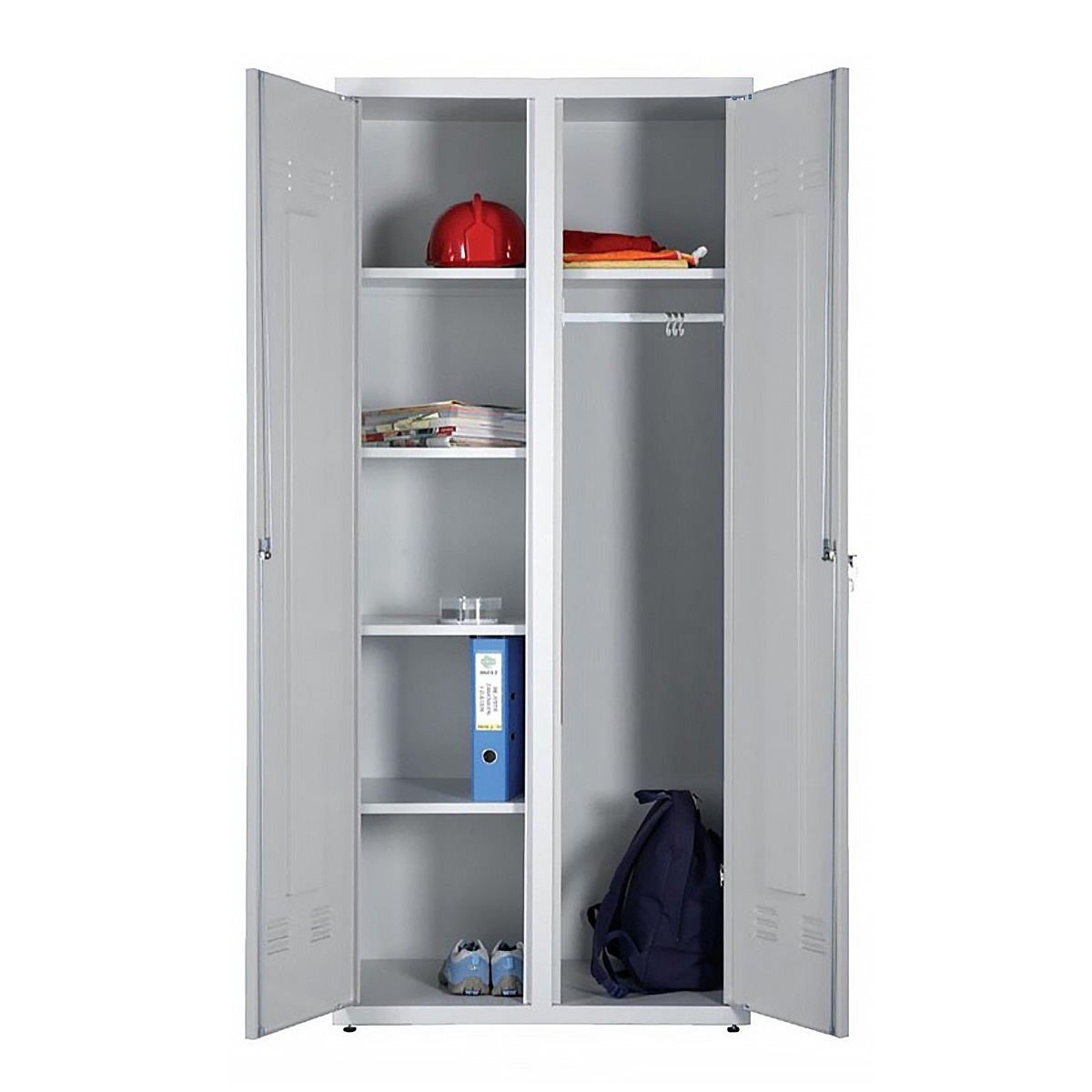 Solid helsveist todelt utstyrsskap med hylledel og opphengsdel.