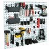 Proff oversikt over verktøyet. Perfekt for verksted, lager og bil. Inneholder 4 hullplater, 38 superklips opphengskroker og 2 Raacofix verktøyholdere. Settet består av 4 bakplater som kan monteres som man ønsker. Oppsettet ifht 2x2 måler 880x1040mm.